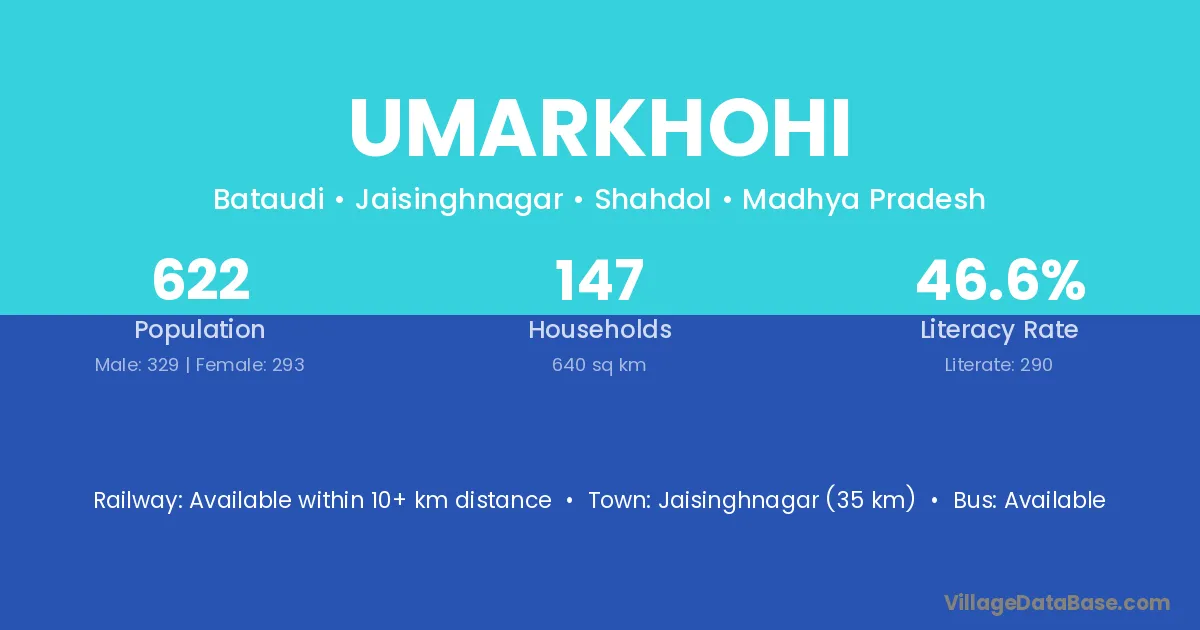 Jaisinghnagar (35 km) is the nearest town to Umarkhohi village for major economic activities and is located approximately 35 km away.