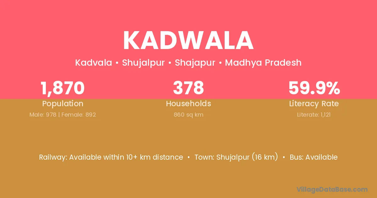 Badod (7 km) is the nearest town to Kadwala village for major economic activities and is located approximately 7 km away.