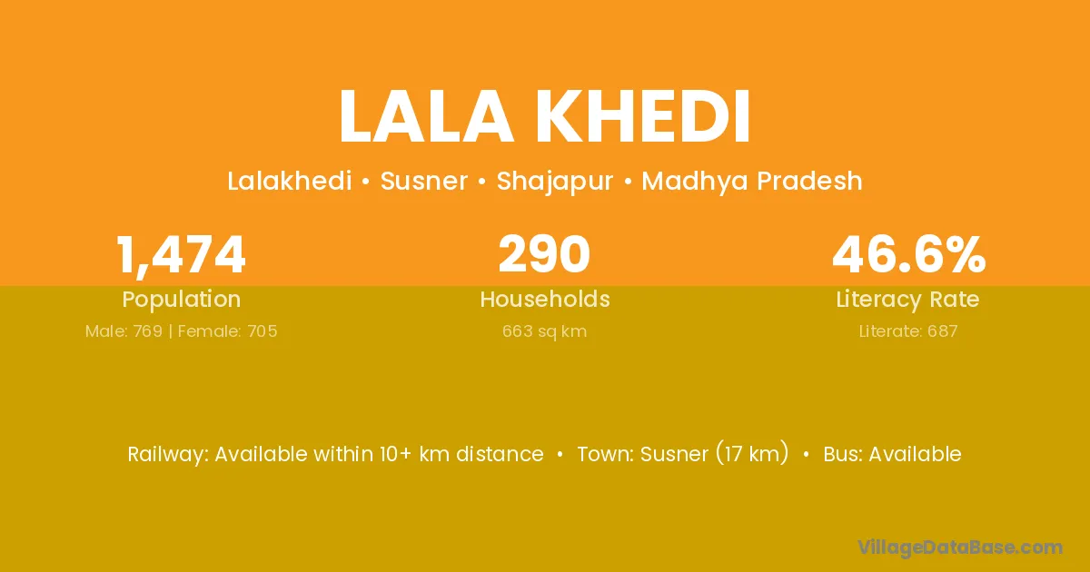Badod (30 km) is the nearest town to Lala Khedi village for major economic activities and is located approximately 30 km away.