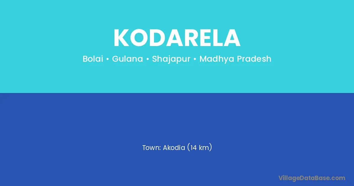 Akodia (14 km) is the nearest town to Kodarela village for major economic activities and is located approximately 14 km away.