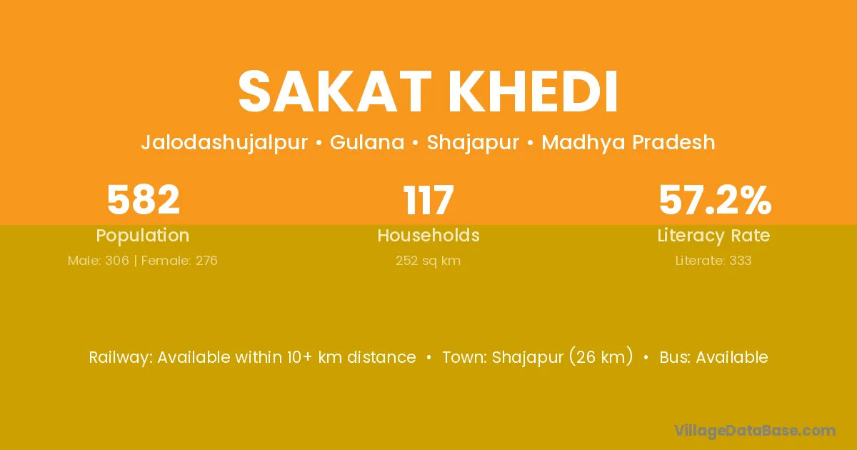 Sakat Khedi village has a total population of 582 people, of which 306 are males and 276 are females.