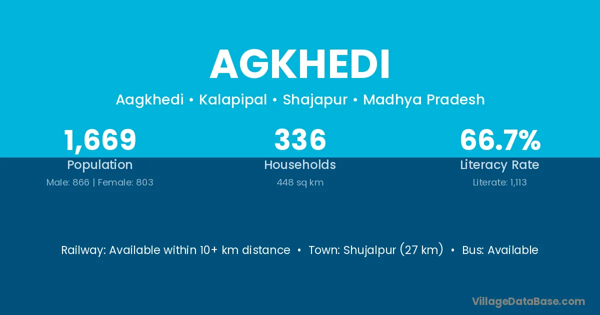 Shujalpur (27 km) is the nearest town to Agkhedi village for major economic activities and is located approximately 27 km away.