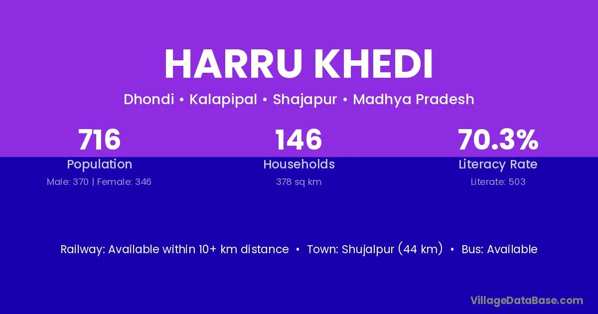 Harru Khedi village has a total population of 716 people, of which 370 are males and 346 are females.