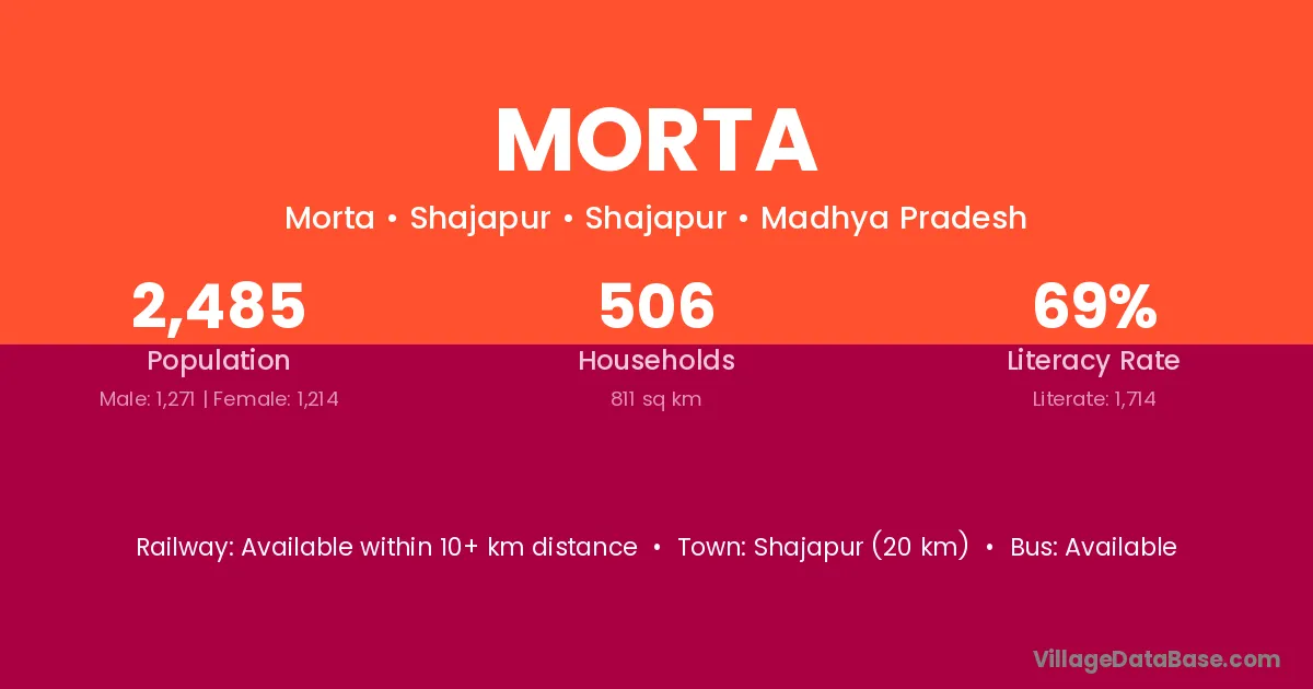 Shajapur (20 km) is the nearest town to Morta village for major economic activities and is located approximately 20 km away.