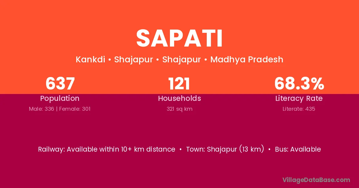 Shajapur (13 km) is the nearest town to Sapati village for major economic activities and is located approximately 13 km away.