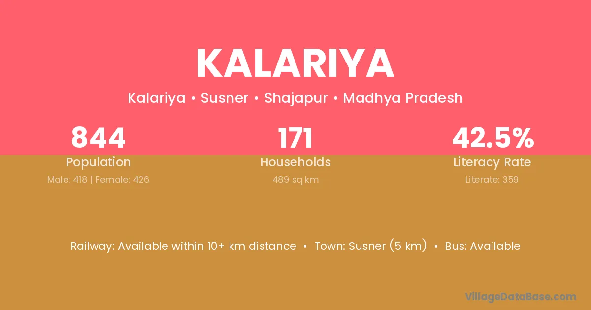 Susner (5 km) is the nearest town to Kalariya village for major economic activities and is located approximately 5 km away.