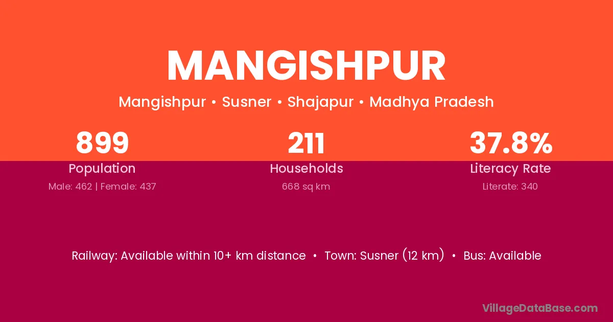 Mangishpur village has a total population of 899 people, of which 462 are males and 437 are females.