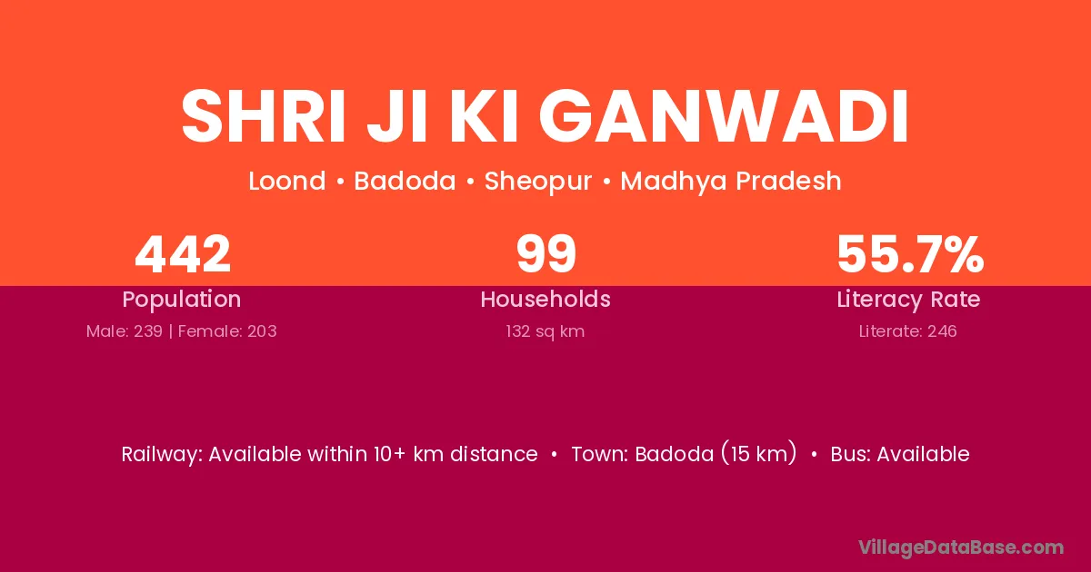Shri Ji Ki Ganwadi village has a total population of 442 people, of which 239 are males and 203 are females.