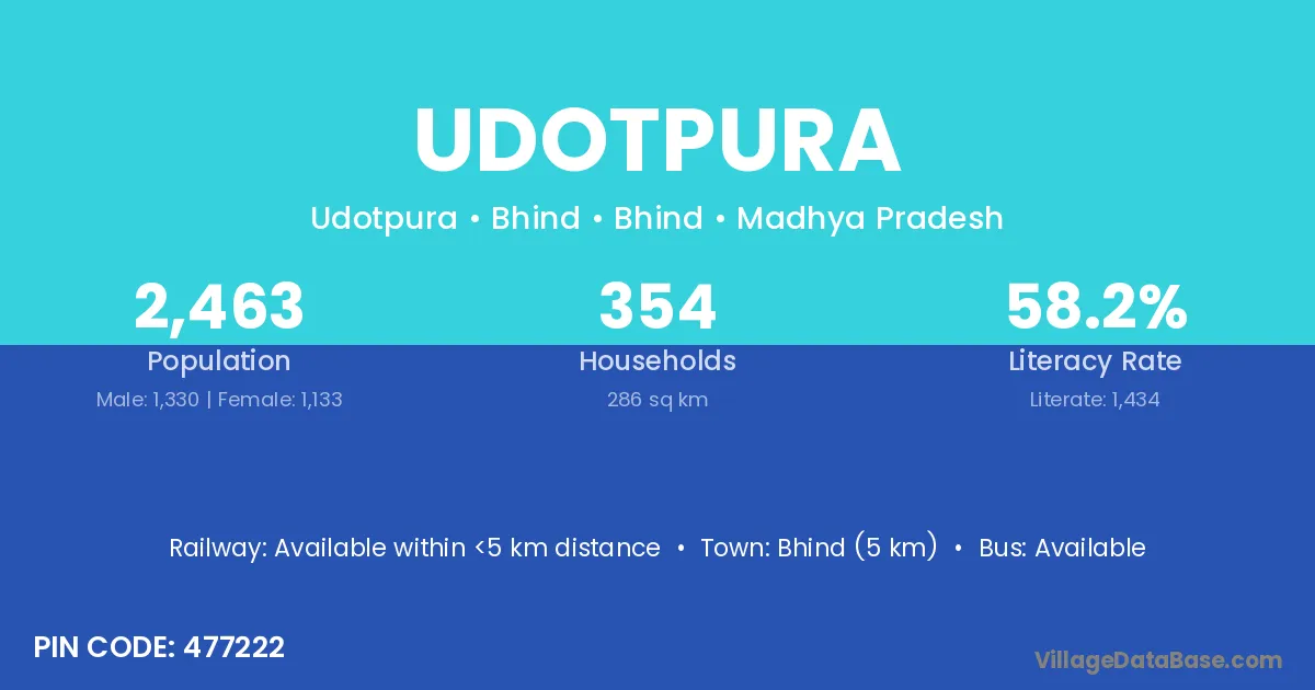 Sheopur (100 km) is the nearest town to Udotpura village for major economic activities and is located approximately 100 km away.