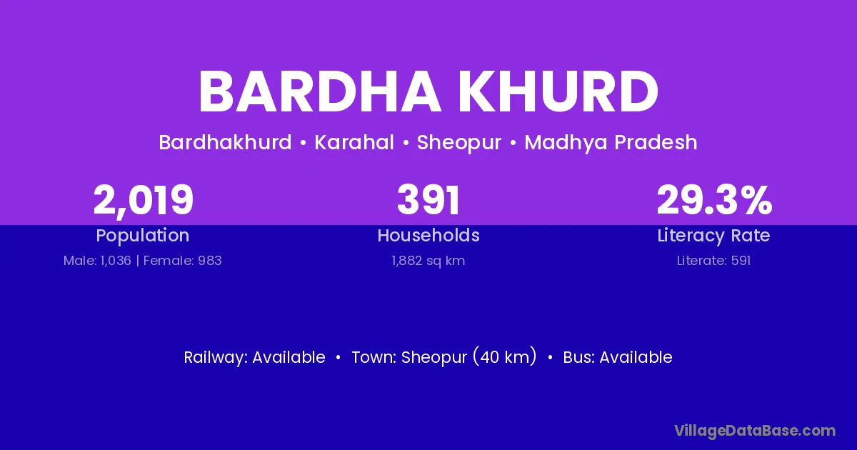 Sheopur (40 km) is the nearest town to Bardha Khurd village for major economic activities and is located approximately 40 km away.