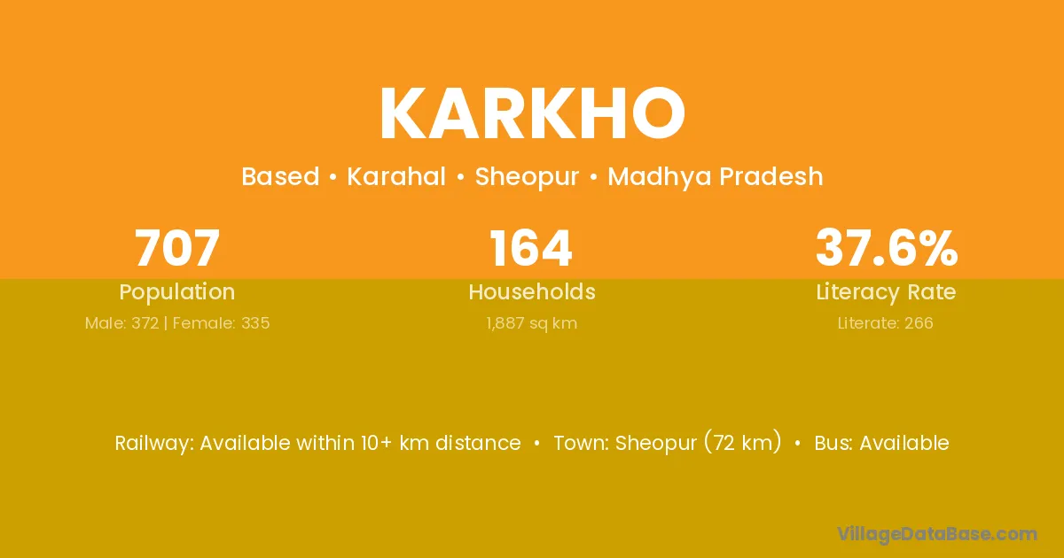 Sheopur (72 km) is the nearest town to Karkho village for major economic activities and is located approximately 72 km away.