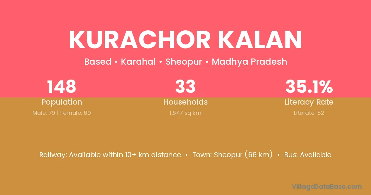 Sheopur (66 km) is the nearest town to Kurachor Kalan village for major economic activities and is located approximately 66 km away.