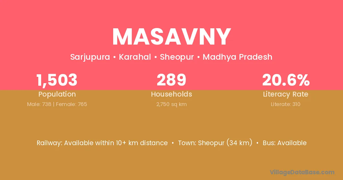 Sheopur (34 km) is the nearest town to Masavny village for major economic activities and is located approximately 34 km away.