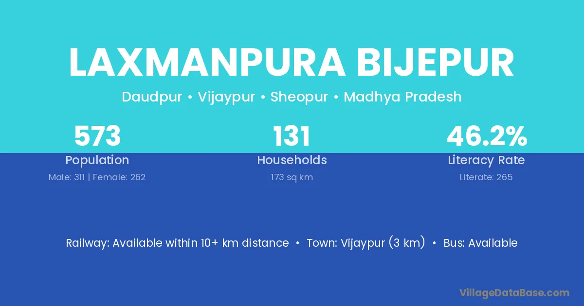 Laxmanpura Bijepur village has a total population of 573 people, of which 311 are males and 262 are females.