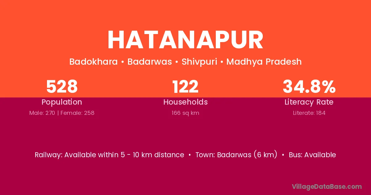 Badarwas (6 km) is the nearest town to Hatanapur village for major economic activities and is located approximately 6 km away.