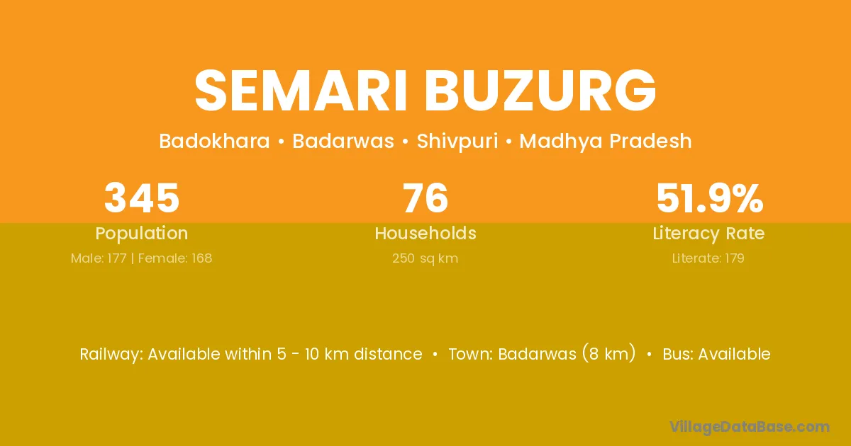 Badarwas (8 km) is the nearest town to Semari Buzurg village for major economic activities and is located approximately 8 km away.