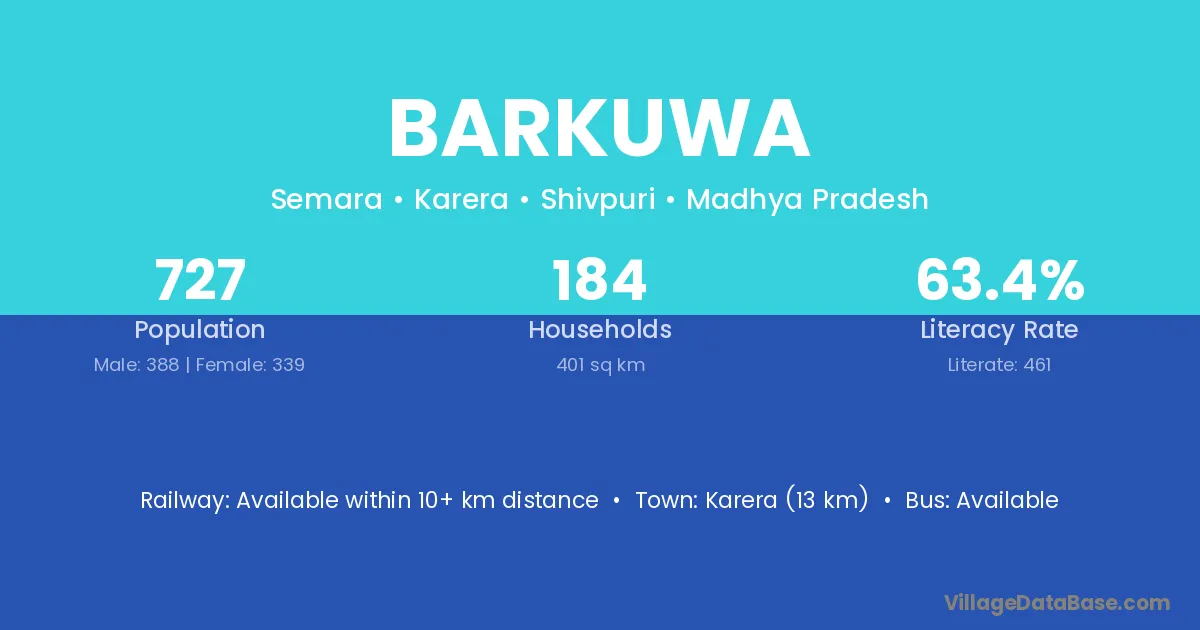 Barkuwa village has a total population of 727 people, of which 388 are males and 339 are females.