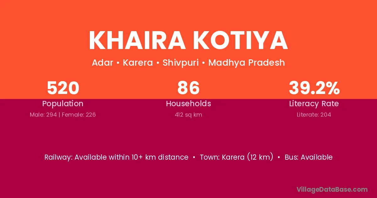 Karera (12 km) is the nearest town to Khaira Kotiya village for major economic activities and is located approximately 12 km away.