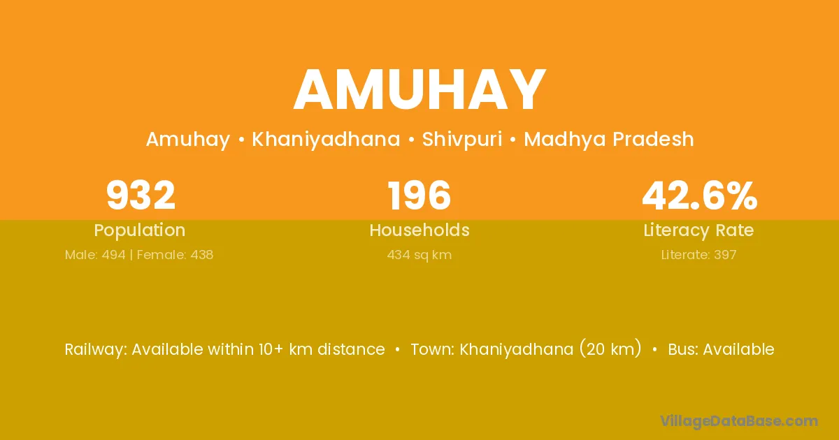 Khaniyadhana (20 km) is the nearest town to Amuhay village for major economic activities and is located approximately 20 km away.