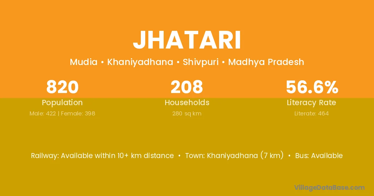 Jhatari village has a total population of 820 people, of which 422 are males and 398 are females.