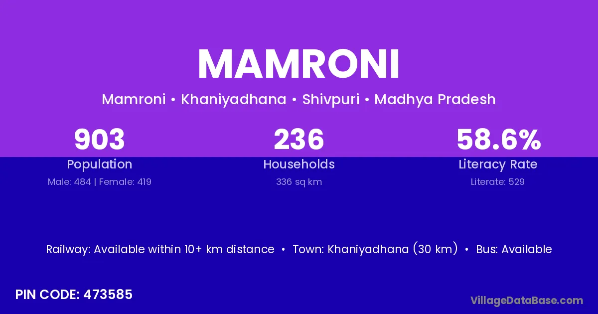 Mamroni village has a total population of 903 people, of which 484 are males and 419 are females.