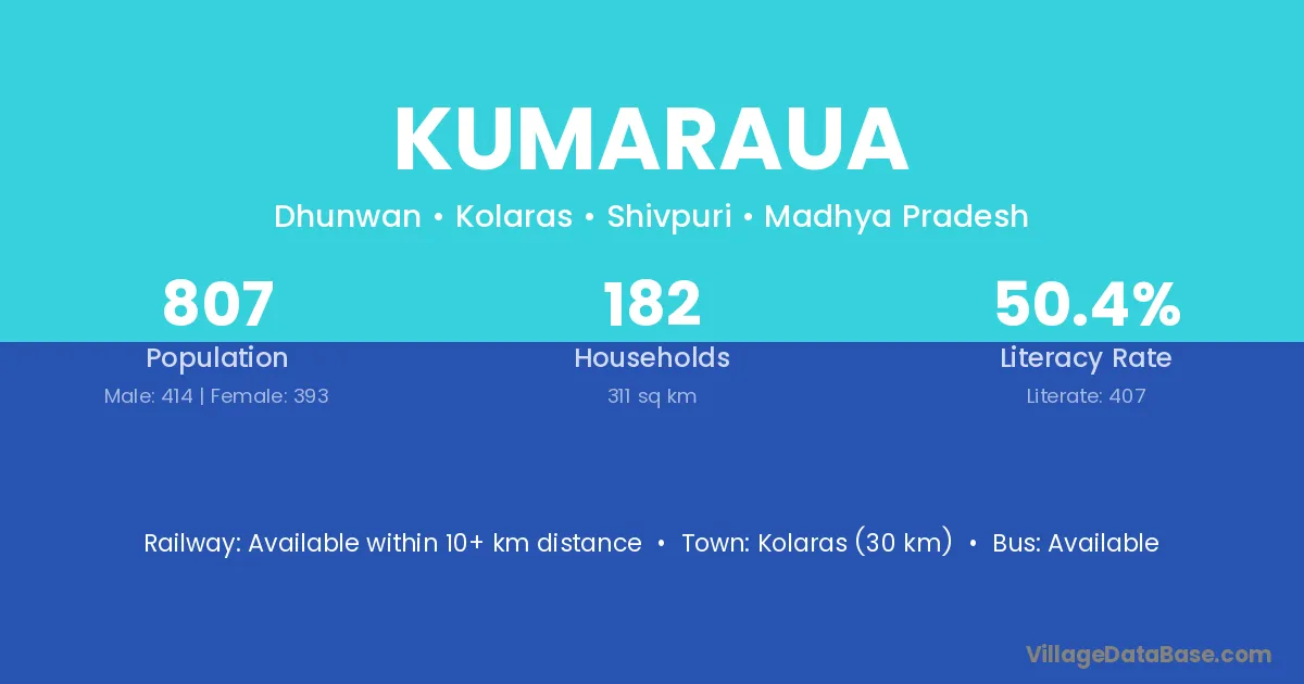 Kolaras (30 km) is the nearest town to Kumaraua village for major economic activities and is located approximately 30 km away.