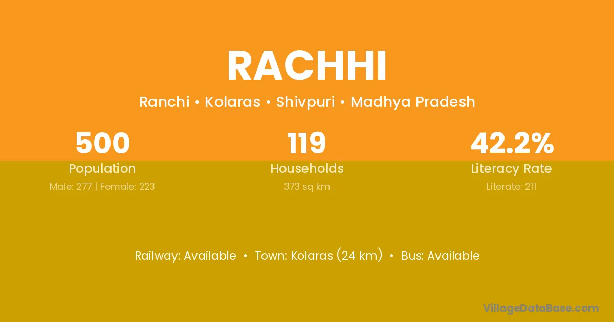 Kolaras (24 km) is the nearest town to Rachhi village for major economic activities and is located approximately 24 km away.
