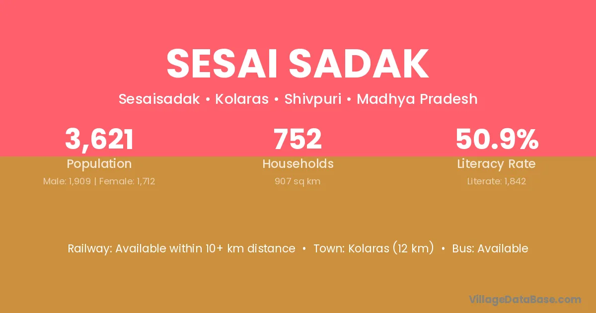 Sesai Sadak village has a total population of 3,621 people, of which 1,909 are males and 1,712 are females.