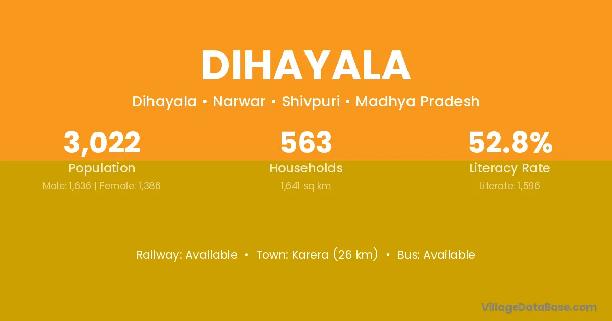 Dihayala village has a total population of 3,022 people, of which 1,636 are males and 1,386 are females.