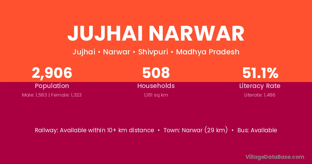 Narwar (29 km) is the nearest town to Jujhai Narwar village for major economic activities and is located approximately 29 km away.
