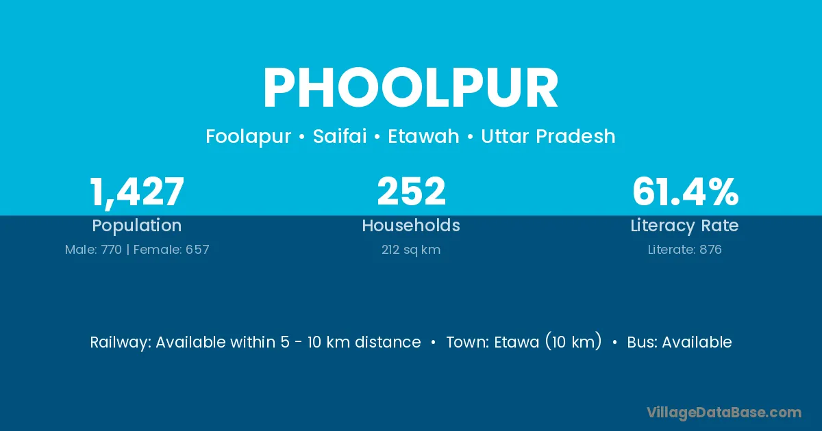The literacy rate of Phoolpur village is 50.00%. Male literacy stands at 58.57% and female literacy at 39.92%.