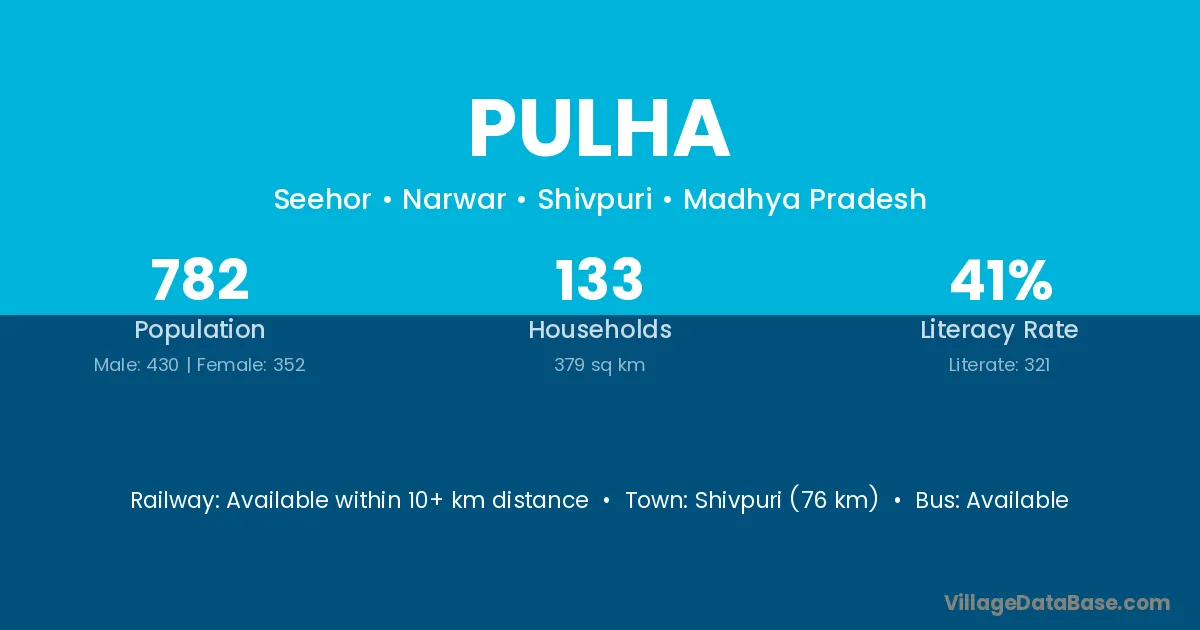 Shivpuri (76 km) is the nearest town to Pulha village for major economic activities and is located approximately 76 km away.
