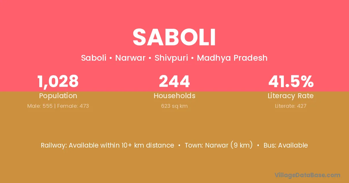 Narwar (9 km) is the nearest town to Saboli village for major economic activities and is located approximately 9 km away.
