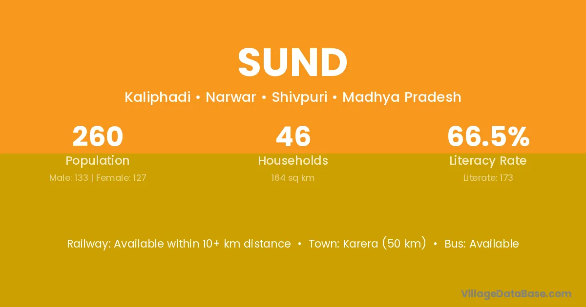 Karera (50 km) is the nearest town to Sund village for major economic activities and is located approximately 50 km away.