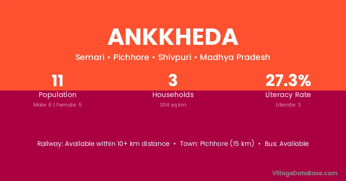 The literacy rate of Ankkheda village is 27.27%. Male literacy stands at 33.33% and female literacy at 20.00%.