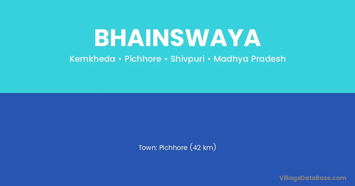 Pichhore (42 km) is the nearest town to Bhainswaya village for major economic activities and is located approximately 42 km away.