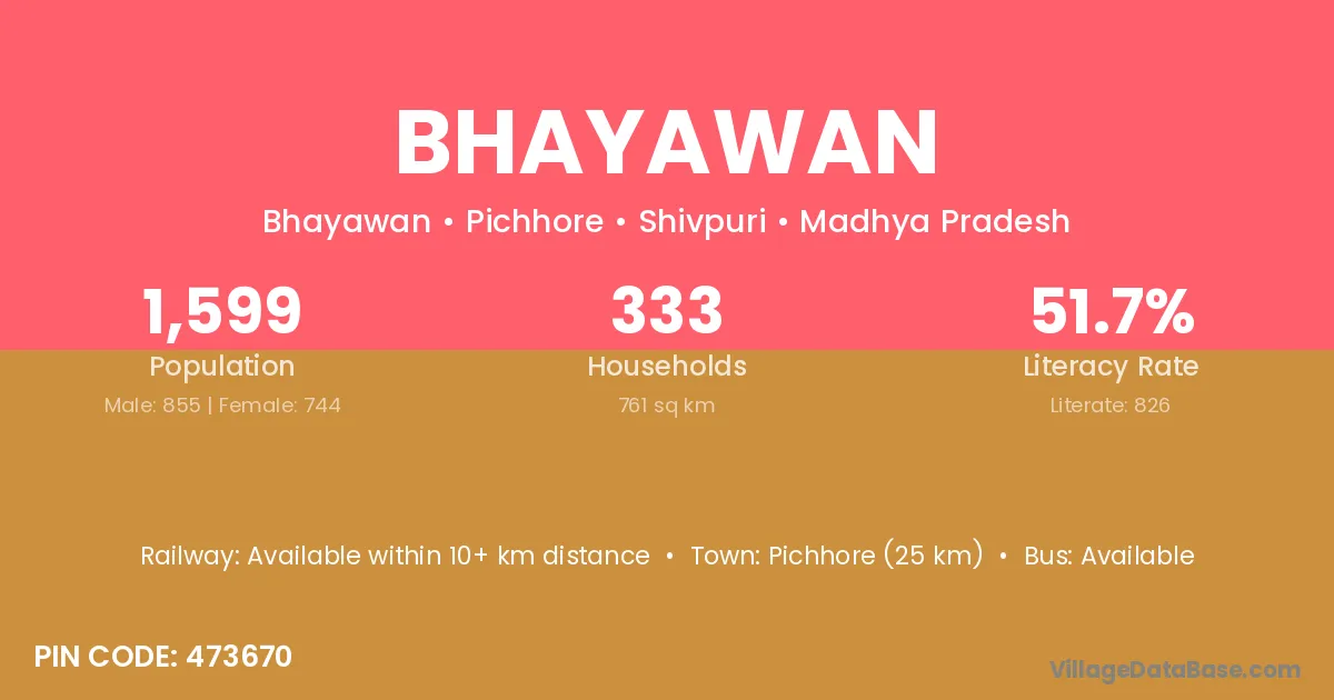 Pichhore (25 km) is the nearest town to Bhayawan village for major economic activities and is located approximately 25 km away.