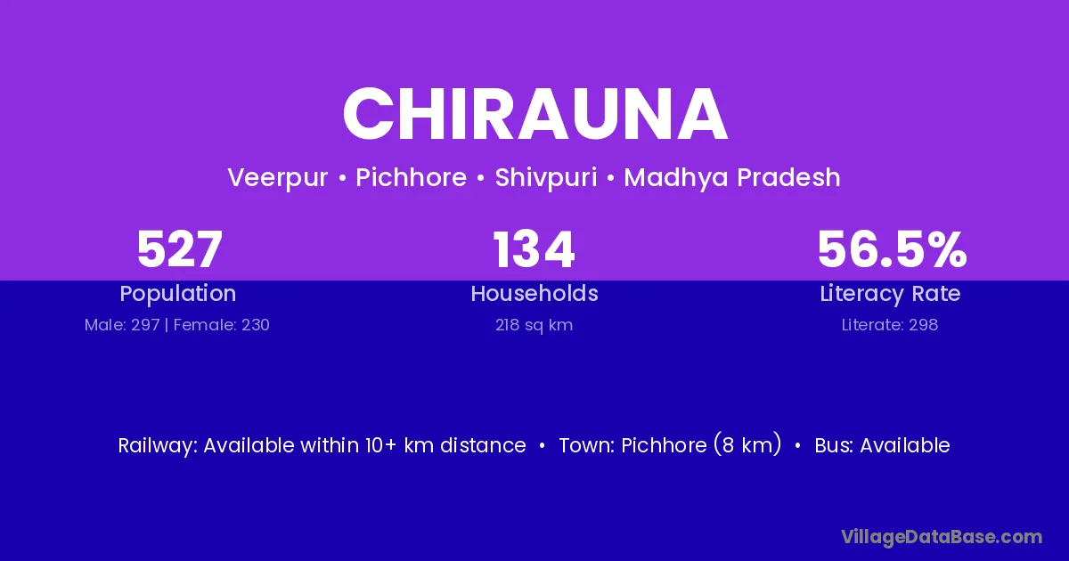 Pichhore (8 km) is the nearest town to Chirauna village for major economic activities and is located approximately 8 km away.