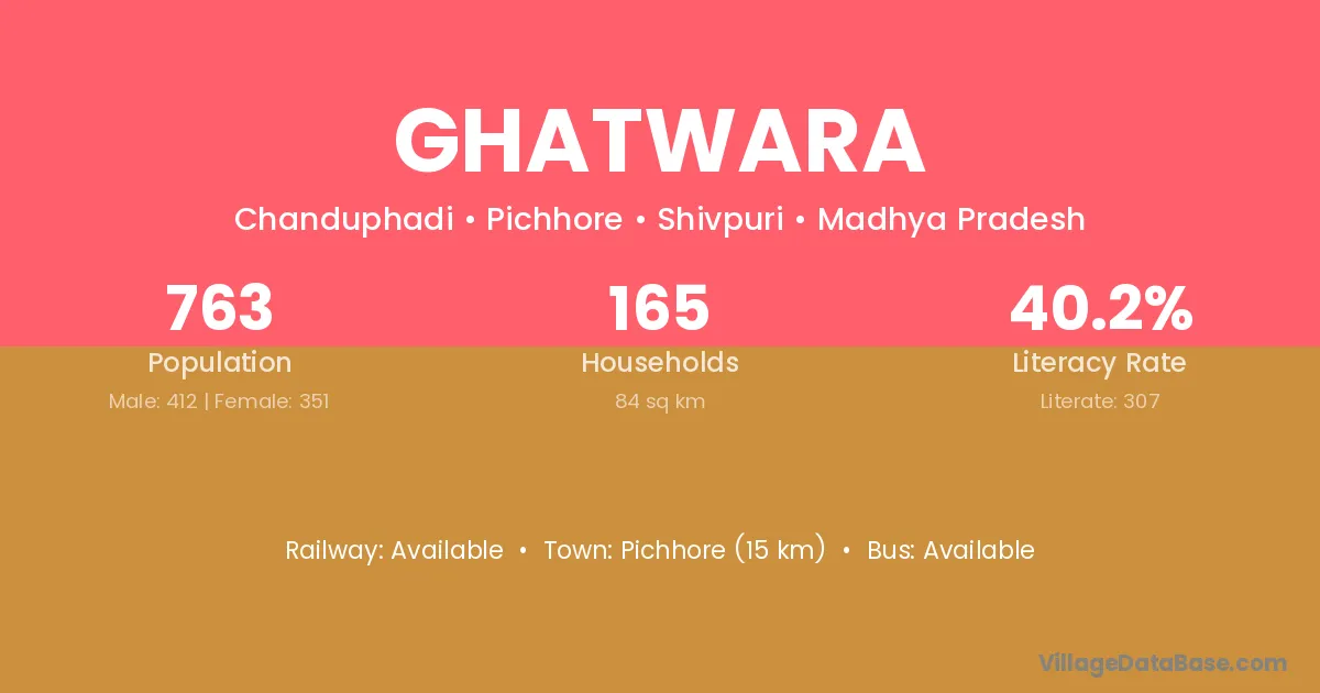Pichhore (15 km) is the nearest town to Ghatwara village for major economic activities and is located approximately 15 km away.