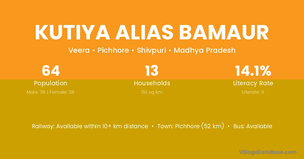 Kutiya Alias Bamaur village has a total population of 64 people, of which 36 are males and 28 are females.
