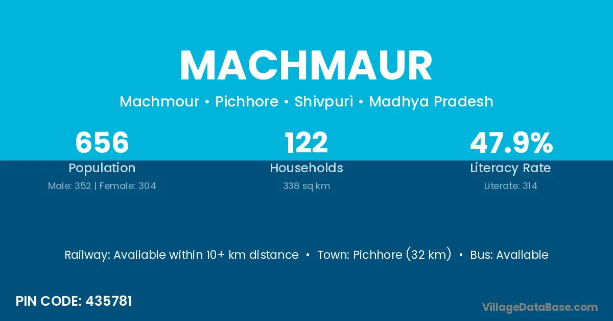 Pichhore (32 km) is the nearest town to Machmaur village for major economic activities and is located approximately 32 km away.