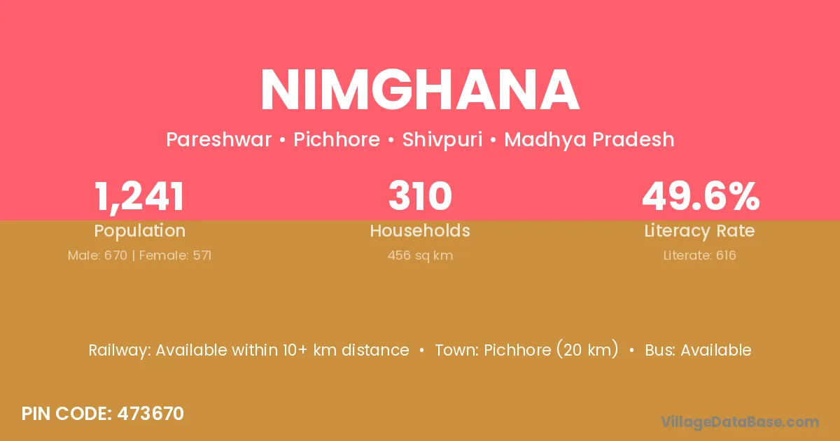 Pichhore (20 km) is the nearest town to Nimghana village for major economic activities and is located approximately 20 km away.