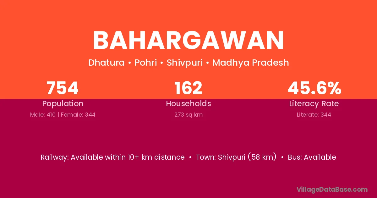 Shivpuri (58 km) is the nearest town to Bahargawan village for major economic activities and is located approximately 58 km away.