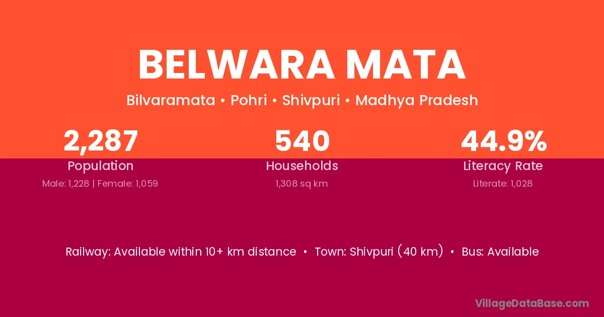 Shivpuri (40 km) is the nearest town to Belwara Mata village for major economic activities and is located approximately 40 km away.