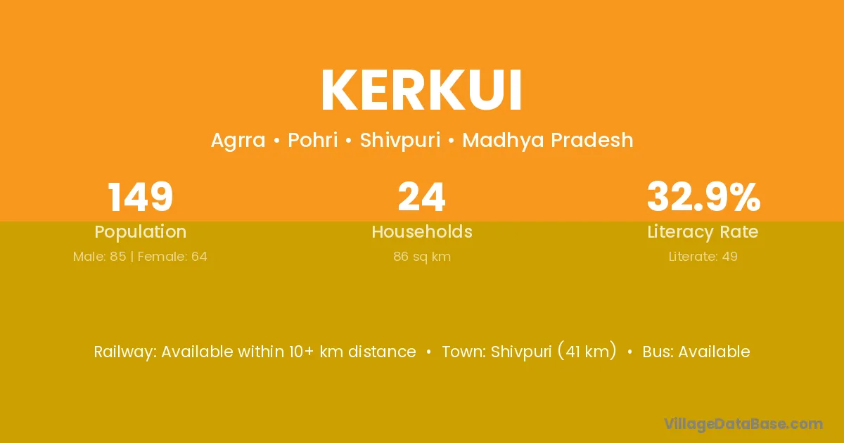 Shivpuri (41 km) is the nearest town to Kerkui village for major economic activities and is located approximately 41 km away.