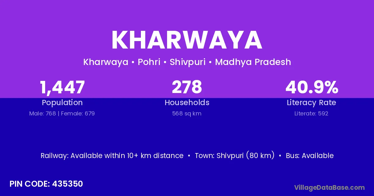 Shivpuri (80 km) is the nearest town to Kharwaya village for major economic activities and is located approximately 80 km away.