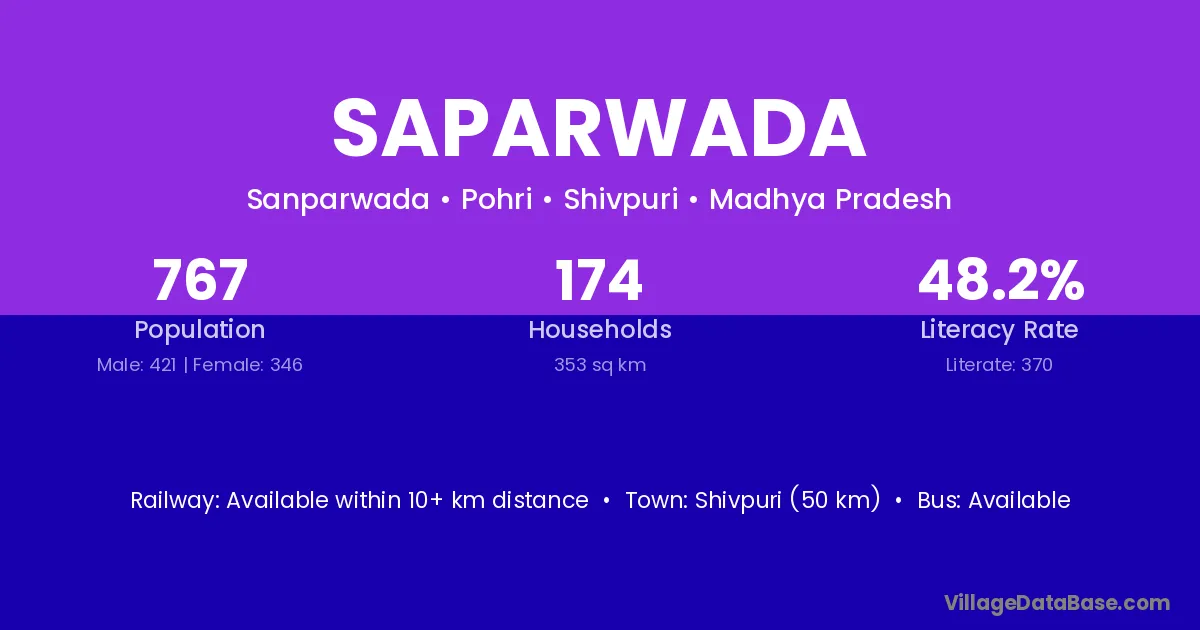 Shivpuri (50 km) is the nearest town to Saparwada village for major economic activities and is located approximately 50 km away.