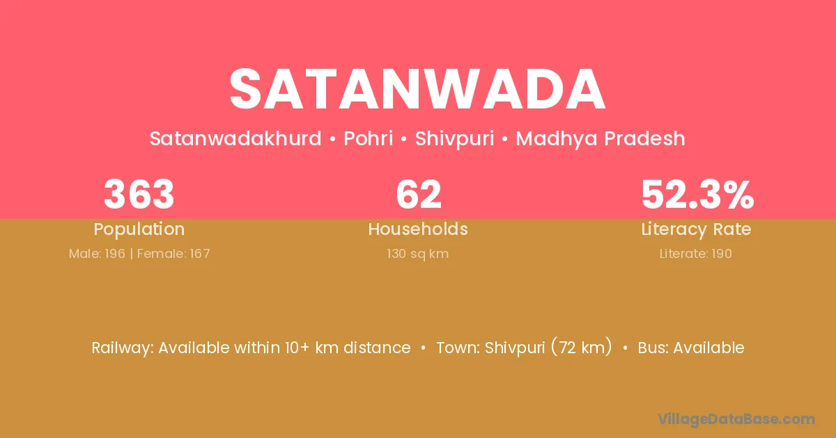 Shivpuri (72 km) is the nearest town to Satanwada village for major economic activities and is located approximately 72 km away.