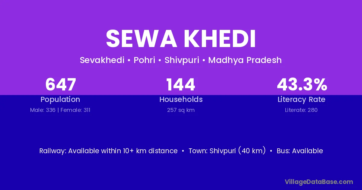 Sewa Khedi village has a total population of 647 people, of which 336 are males and 311 are females.