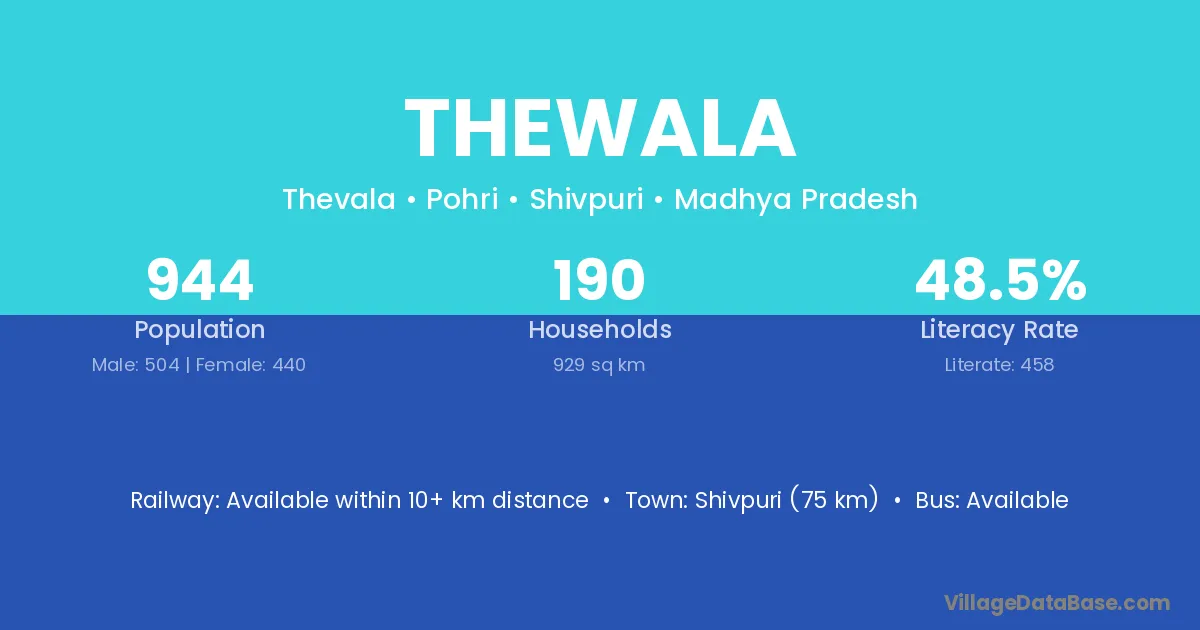 Shivpuri (75 km) is the nearest town to Thewala village for major economic activities and is located approximately 75 km away.